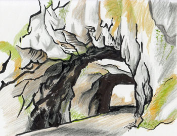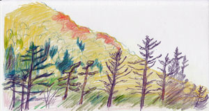 これは《秋山スケッチ》を色鉛筆で模写したものです。