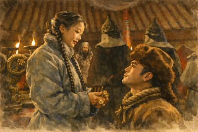 モンゴルへ逃れ、息子の郭靖を産みます。