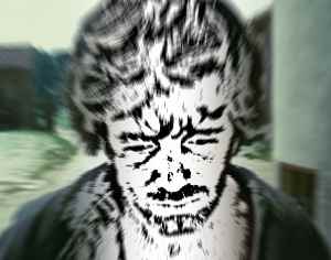 目は閉じて、眠っている。父親は彼の上に屈みこんで